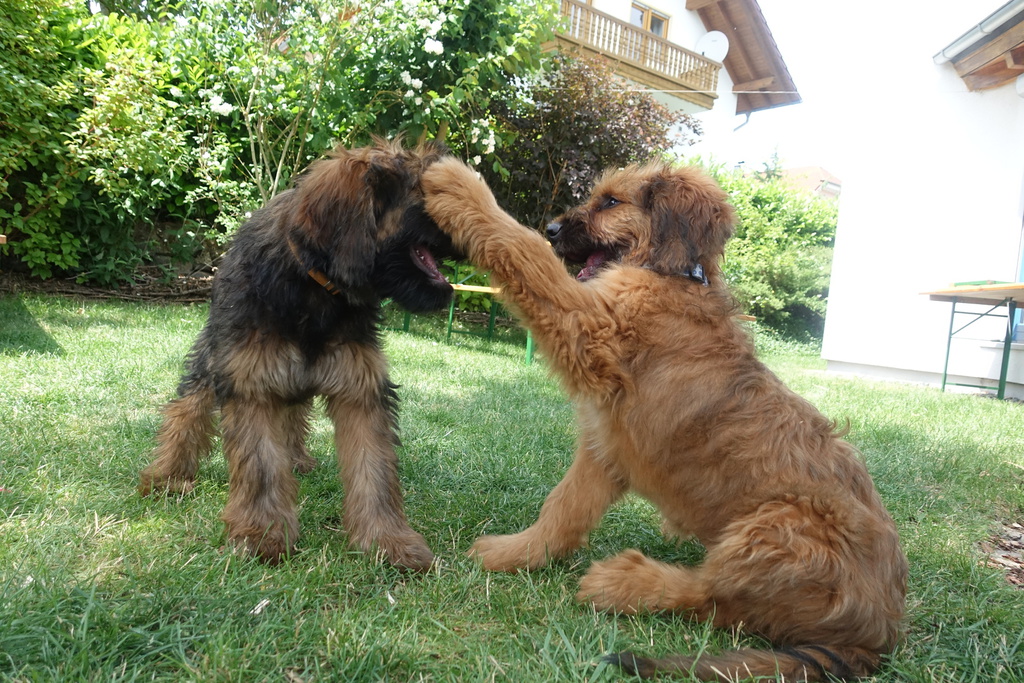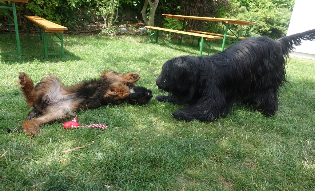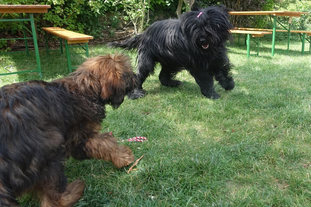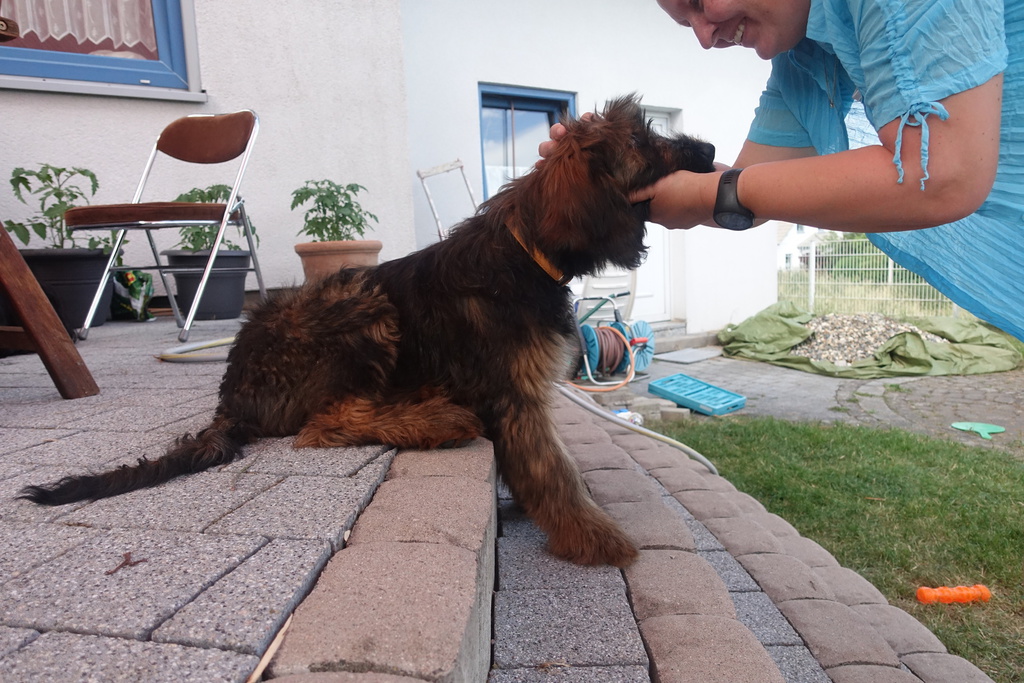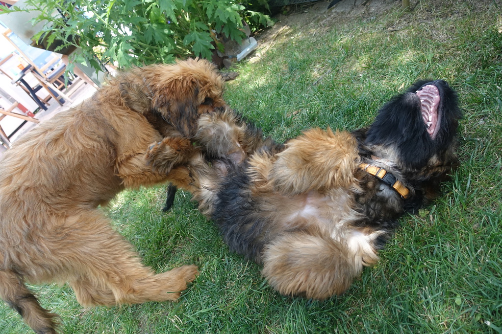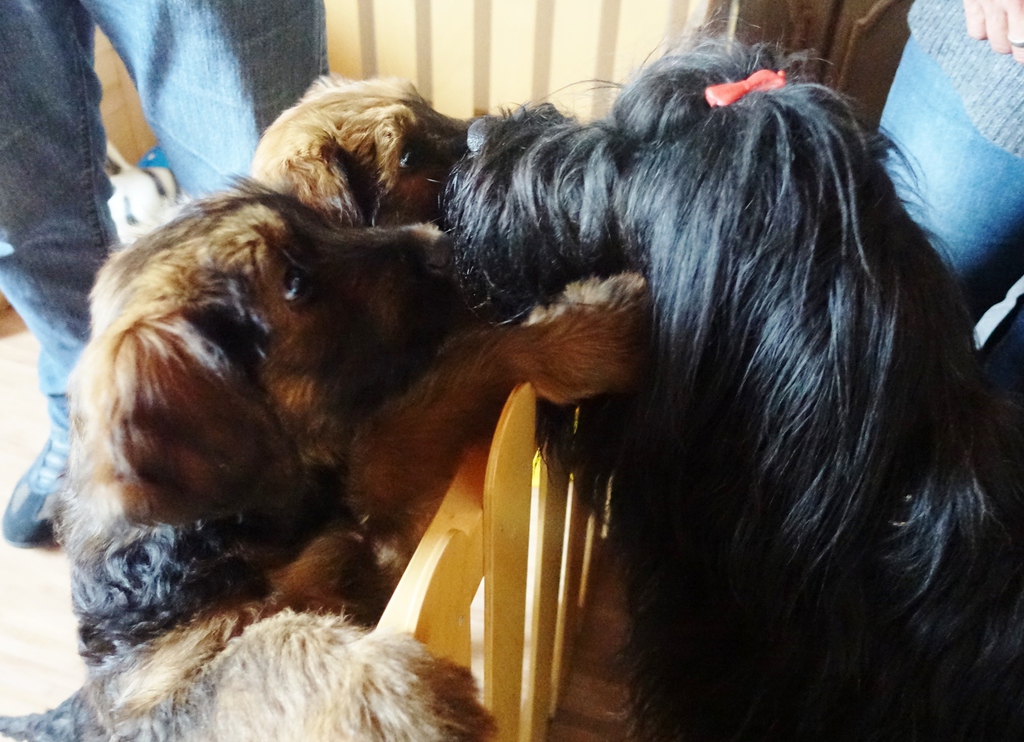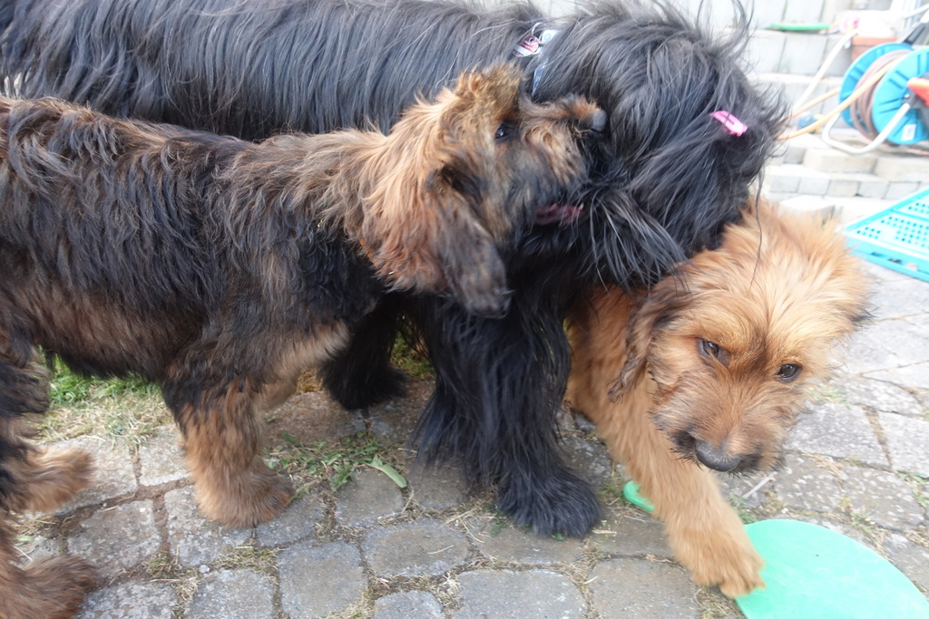 Der Ayvy geht es prima. Sie hat eine tolle Familie, eine Briard Spielkameradin und wird viel beschäftigt. Aus Ayvy soll ein Therapiehund werden und sie ist auf dem besten Weg dorthin.
