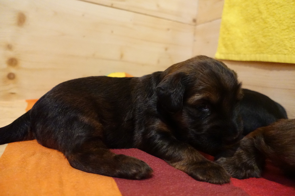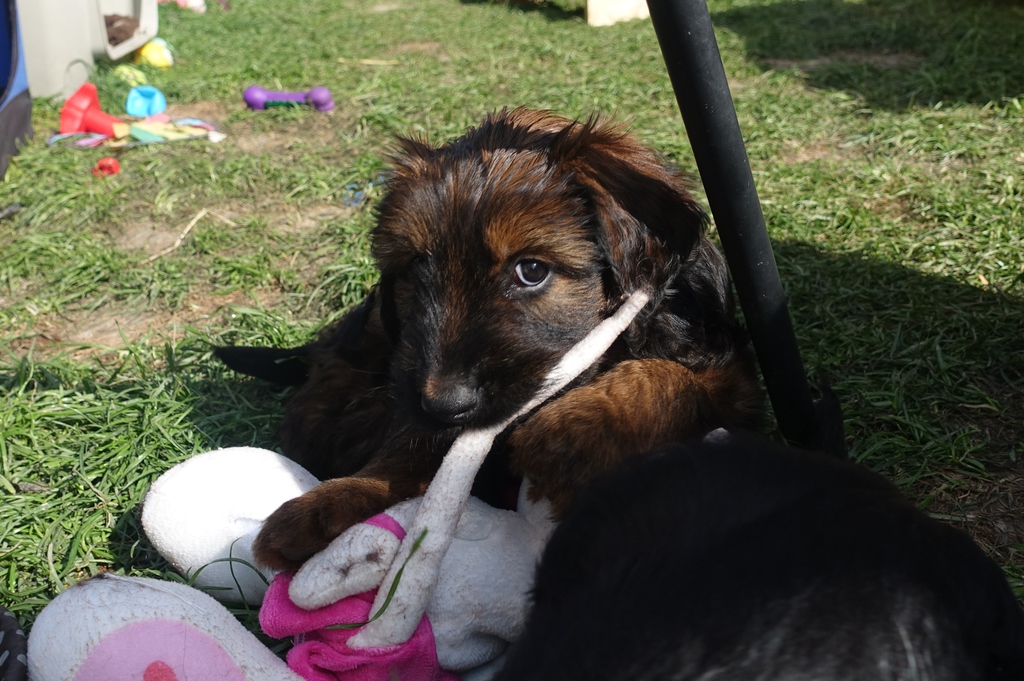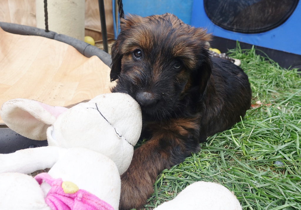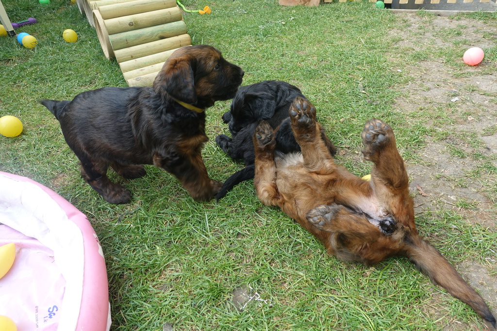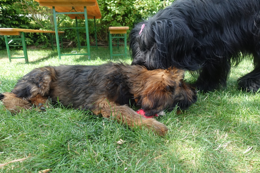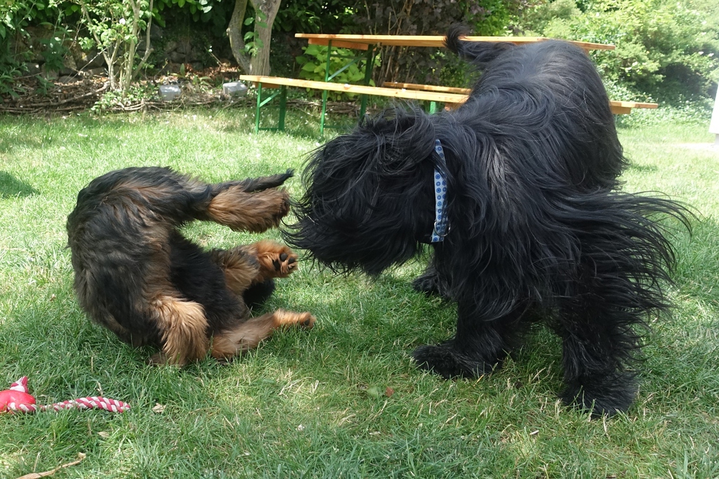 Der Ayvy geht es prima. Sie hat eine tolle Familie, eine Briard Spielkameradin und wird viel beschäftigt. Aus Ayvy soll ein Therapiehund werden und sie ist auf dem besten Weg dorthin.